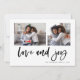 Casual Script Two Photo Grid | Love and Joy Holiday Card