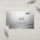 Casually Silver Curved Decor with Logo and Photo Business Card
