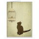 A delightful card with the silhouette of a cat sitting under a vintage style bird cage. A vintage wallpaper in the background. Add your own message to make it uniquely yours.