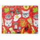 Cat and egg on red notepad