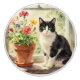 An illustration of a black and white cat sitting on a flower filled window sill. A beautiful knob to stick on envelopes or decorate your notebooks with.
