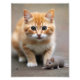 This photo print features and adorable kitten who is not quite sure what to do with the mouse.