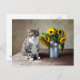 Still Life with Cat and Sunflowers in Oil Painting Style