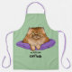 An orange Persian cat on a royal purple pillow is showing their attitude in a backdrop of green