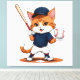 Cat baseball player canvas print