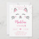 Kitten Birthday Invitation Template is perfect for girl's birthday party. Cute Kitty Cat themed invite is full of fun and cute design elements like kitten face, whiskers, cat paw, and more. Kids birthday are special and this invite can help it make a memorable bday party