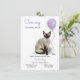 Adorable watercolor Siamese Cat with with party ballon and mouse. Great for a birthday party for kids, adults or a real cat!