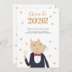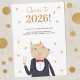 Welcome in the New Year with a playful twist! This fun and whimsical design features an suave and sophisticated anthropomorphic golden cat dressed in a tuxedo and bow tie, holding a glass of celebratory Champagne against a gold, black, and white palette. Personalize all text to include your greeting and name(s). Perfect for animal lovers, cat fans, and anyone with a sense of humor. Original art by Nic Squirrell.