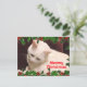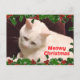 A beautiful white cat with Holly boarder, and message: "Meowy Christmas." What a perfect greeting for the cat lover to send this Christmas Season!