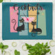 We've created a fun and colourful mid-century design for this kitchen towel so you can utilize as a fun bar towel. This one features two mid-century black cats with big eyes sitting in front of a cocktail. Mid-century pattern with starbursts in the background. You can easily change the background colour to any colour your desire, prior to placing into your shopping cart. Note that the design is only on one side of the towel.