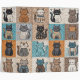 Colourful quilted squares feature various cats with different patterns and colours each sitting against a unique background