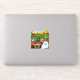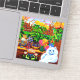 Sticker featuring Louis Wain’s animal painting Master of Cat College (1860-1939). A thoughtful white cat with striking blue eyes sits ponderously next to a vibrant assortment of beautiful flowers. The majestic cat college looms in the background underneath a pink and blue sky. A wonderful gift for cat lovers and English art.