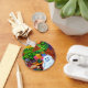 Keychain featuring Louis Wain’s animal painting Master of Cat College (1860-1939). A thoughtful white cat with striking blue eyes sits ponderously next to a vibrant assortment of beautiful flowers. The majestic cat college looms in the background underneath a pink and blue sky. A wonderful gift for cat lovers and English art.