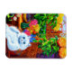 Magnet featuring Louis Wain’s animal painting Master of Cat College (1860-1939). A thoughtful white cat with striking blue eyes sits ponderously next to a vibrant assortment of beautiful flowers. The majestic cat college looms in the background underneath a pink and blue sky. A wonderful gift for cat lovers and English art.