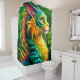 This shower curtain has a cat creature on it.