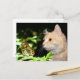 Cream or buff coloured cat curious about a butterfly photo postcard.