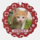 Cat Custom Photo and Name Red Paw Print Gingham Ornament Card