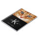 A chic black background. Personalize and add your photo, a name, monogram letter and a text. The name is written in white with a large modern hand lettered style script with swashes. The monogram letter in grey. To keep the swashes only delete the sample name, leave the spaces or emoji's in front and after the name