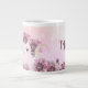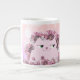 Cat Cute Pink Flowers Large Coffee Mug