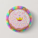 A frosted doughnut with colourful sprinkles in the shape of a cat, with a rainbow background and spilled sprinkles. Bring this adorable pet pastry on pin home with you! Choose the size or shape that suits you.
