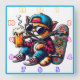 Cat enjoying a drink while skateboarding in style square wall clock