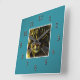 Cat Eyes Hypnotizing Teal Framed Photo Square Wall Clock