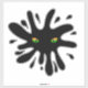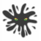 Cat eyes peeking through a black hole. Orange, lime green, blue and brown.