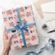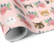 Cat faces pink florals wrapping paper