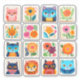 Small whimsical colourful animals and flower squares.