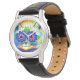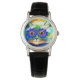 Watch featuring Louis Wain’s animal painting Cat Flower Eyes (1860-1939). A rainbow cat widely grins. Blue flowers cover his eyes. A wonderful gift for cat lovers and English art.