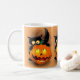 Cat Fun Halloween Character biting a Pumpkin Coffee Mug