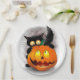 Cat Fun Halloween Character biting a Pumpkin Paper Plate