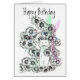A sketch of a sweet cat in the garden of aster flowers with a bright red heart for love. Cute card to wish someone special a very happy birthday!