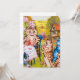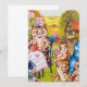 Card featuring Louis Wain’s animal painting Cats Relaxing in the Grounds at Napsbury (1860-1939). A smiling cat pours milk into teacups while watching six smaller cats drink milk, eat sweets, and play games in a garden. A wonderful gift for cat lovers and English art.