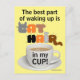 The best part of waking up is cat hair in my cup! Humourous cat lover postcard by AaronDesignsUS.