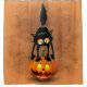 Funny and Scared Cat Halloween Cartoon Character standing on a naughty laughing Pumpkin. Original Humourous vector illustration Copyright BluedarkArt TheChameleonArt.