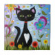Cat In A Garden Abstract Art Tile