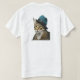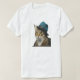 This men's basic T-shirt design features a striking image of a tabby cat wearing a stylish teal fedora, adding a touch of playful sophistication to your casual wardrobe.
