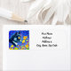 Return Address Labels featuring Louis Wain’s animal painting Cat in Sea of Flowers (1860-1939). A black and white cat with golden eyes smells yellow flowers. In the purple background are blue flowers. A wonderful gift for cat lovers and English art.
