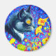 Magnet featuring Louis Wain’s animal painting Cat in Sea of Flowers (1860-1939). A black and white cat with golden eyes smells yellow flowers. In the purple background are blue flowers. A wonderful gift for cat lovers and English art.