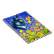 Notebook featuring Louis Wain’s animal painting Cat in Sea of Flowers (1860-1939). A black and white cat with golden eyes smells yellow flowers. In the purple background are blue flowers. A wonderful gift for cat lovers and English art.