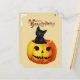 Vintage Ellen Clapsaddle Halloween postcard from series 1237 showing a very cute cat sitting in a pumpkin. Reprinted on this Halloween postcard.