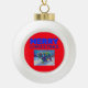 Cat in Snow Wearing Ear Muffs Ceramic Ball Christmas Ornament