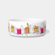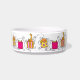 This is a heavy, durable bowl decorated with Tibbies of many colors, the perfect size for hungry/thirsty Tibs. The design is interesting and printing clear.