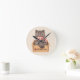Fluffy grey cat sitting comfortably inside a cardboard box. The txt "If fits, sits" is expressing the cat's innate behavioral rule.