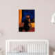 This poster features a gorgeous golden, orange and brown tortoiseshell cat sitting on a red pillow, staring out the window into a midnight blue sky. She casts a shadow on the gold coloured wooden windowsill. I have digitally enhanced my original photograph to achieve a painterly effect.