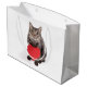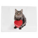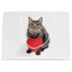 Cute tabby cat wearing a red Valentine's Day heart on a white background