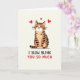 This card features a centered tabby cat with orange and caramel fur and neat black stripes, shown from the front in a balanced pose. The cat has a white belly and muzzle, closed eyes, and a small smile that feels like a sweet “slow blink” of affection. Its tiny pink nose and long whiskers stand out against the simple off-white background. Above the cat’s head, three red hearts float in a row to highlight the loving mood ❤️. Near the bottom of the card, the message reads “I SLOW BLINK YOU SO MUCH.” The words “I SLOW BLINK” are in black block letters, while “YOU SO MUCH” is in red block letters, making the punchline easy to spot 💌🍫. It’s a warm, cat-lover way to say you care, so pass it along and share your Valentine’s Day feelings with someone special.
