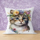 Cat Lover Gift - Watercolor Cat with flowers Throw Pillow