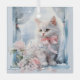 This adorable ornament has a cute white kittend dressed